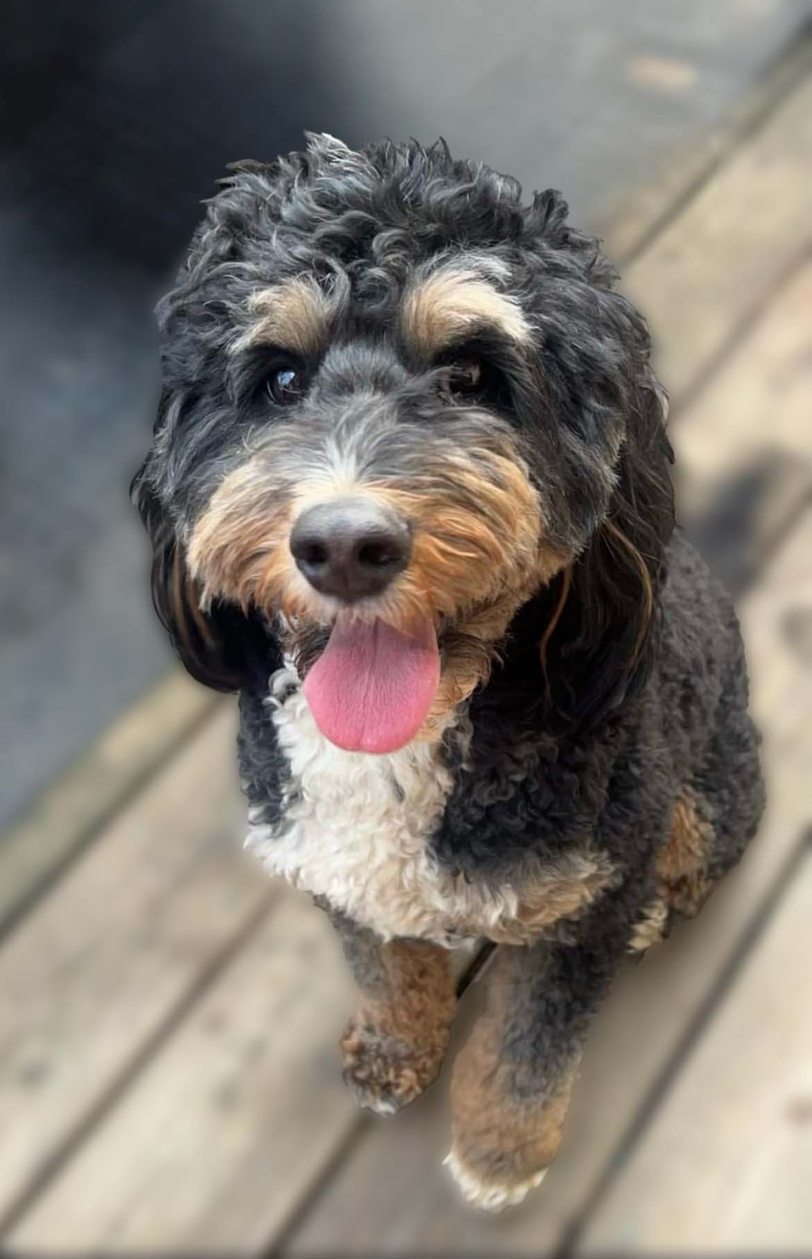 The father of this litter belongs to a friend. He is a handsome 20-pound Mini Bernedoodle with a friendly, laid-back temperament. He has a soft, low to no shedding coat and passes along the classic Bernedoodle traits families love: a loving personality, rich coloring, and the intelligence of the Poodle line. He and Evie are an excellent match for producing healthy, well-balanced puppies.