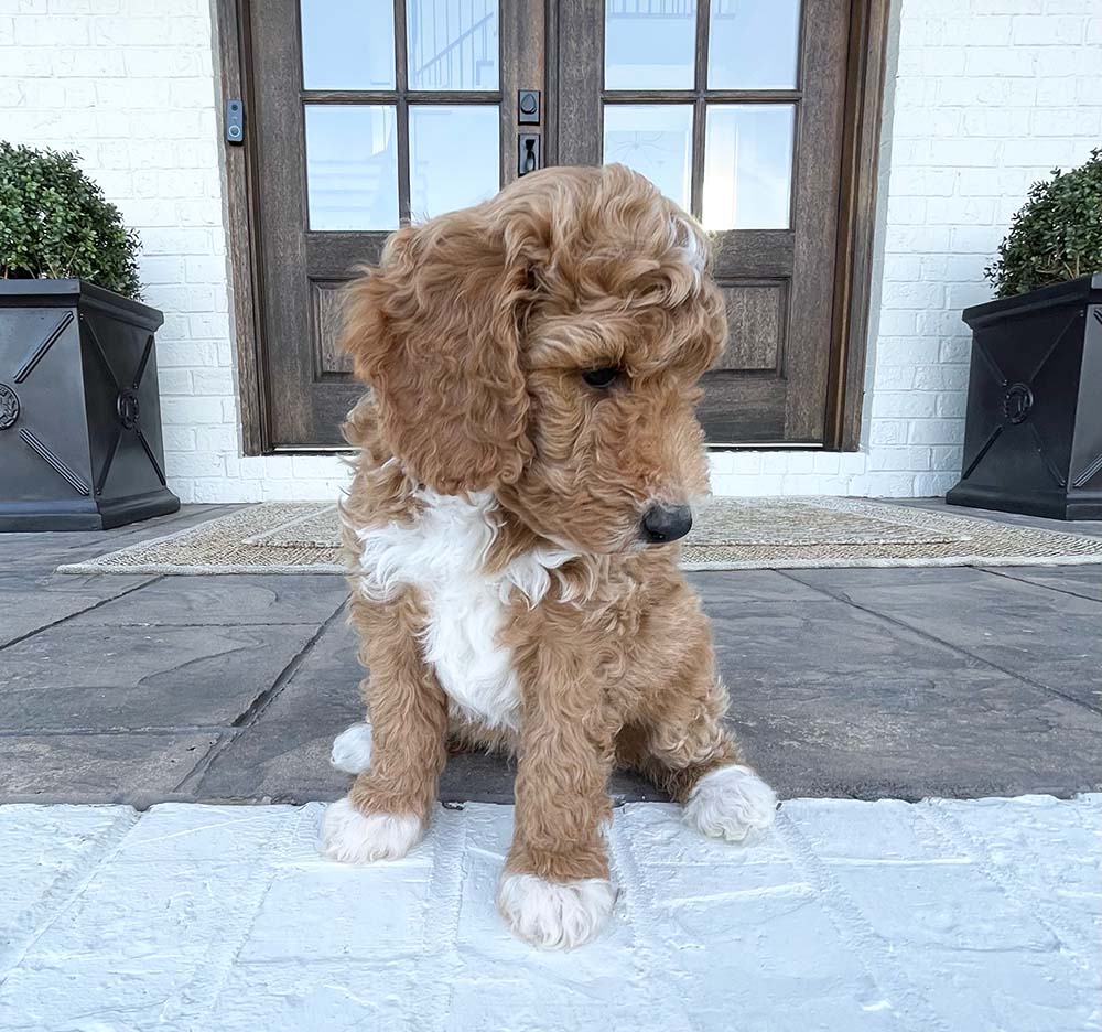 Each of our puppies has their own personality, coloring, and story. These puppies have a higher percentage of poodle, making them the most sought after bernedoodles for families looking for hypoallergenic, low to no shedding coats along with intelligence and sweet, gentle temperaments. Browse the available little ones below and click on any photo to see more details, additional pictures, and availability information. We will update this page often as the puppies grow, so check back for new photos and milestones.